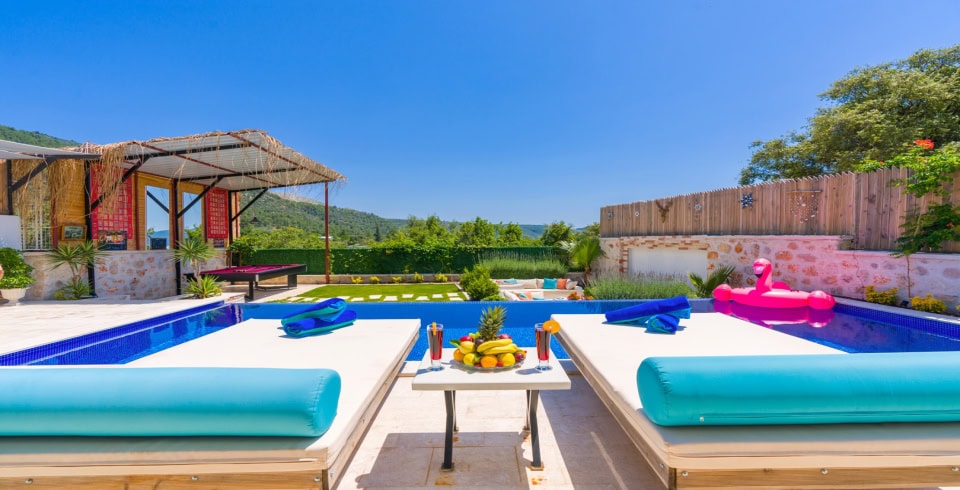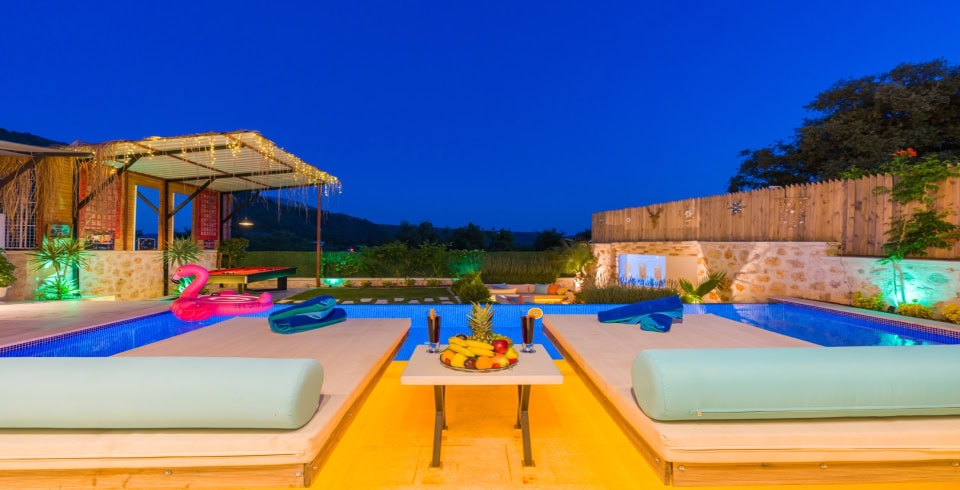 Havuz ve Bahçe : Villamızın havuzu ise etrafı dışarıdan görülmeyecek şekilde korunaklı olup sizlere huzurlu ve keyifli havuz deneyimi sunmaktadır. Size özel muhafazakâr yüzme havuzu, şezlong keyfi ve şemsiye ile yazın en güzel günlerinde sizleri bekliyor.