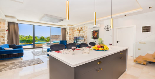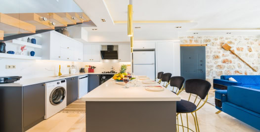 Mutfak : Villamızın geniş Amerikan mutfağı ile sizlere kendi evinizin mutfağı gibi hissettirecek. Ayrıca mutfakta klima, bulaşık makinası, buzdolabı, çamaşır makinası, su ısıtıcısı, fırın, 4`lü ocak seti, yemek masası ile tava tencere vb. mutfak araç gereçlerini kullanma fırsatını sizlere sunuyoruz.