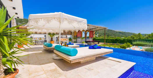Villa Casa Perla, Kalkan’nın en güzel köyü olan Çayköy bölgesinde konumlanmıştır. Doğa ile iç içe olan geniş bahçeli, müstakil villamız tam da şehirden kaçıp, bir yılın tüm yılın yorgunluğunu atmak, tatilin keyfini çıkarmak isteyen müşterilerimize göre. İnşaatı yeni tamamlanmış olan villamız son derece modern eşyalarla donatılmıştır. Ultra lüks villamızda aradığınız her şeyi eksiksiz bir şekilde bulabilirsiniz. Villamızın bahçesi, havuzu ve havuz terası korunaklı olup muhafazakar bir villa seçeneğidir. Villamızı diğer villalardan ayıran özelliği bahçesinde projeksiyon sistemi mevcut olmasıdır. Villa Casa Perla Kalkan Merkez’e 15 km mesafe uzaklığında olup, en yakın plaja 16 km mesafe uzaklığındadır. Her detayıyla keyif dolu bir tatil geçirebileceğiniz villamız sizleri bekliyor.