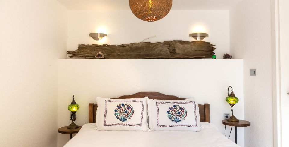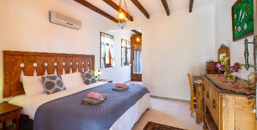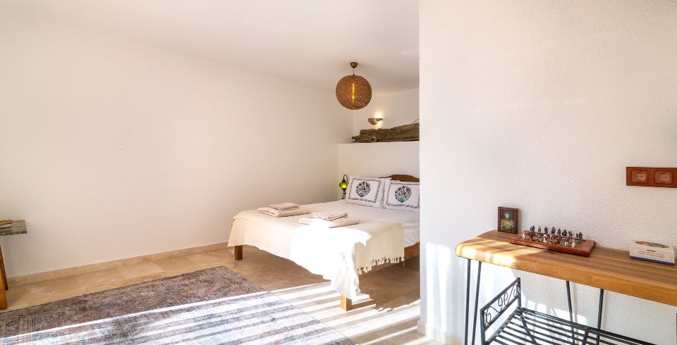 1. Yatak Odası : 1 adet çift kişilik yatak, klima, komodin, elbise dolabı, ortak banyo ve tuvalet bulunmaktadır.
