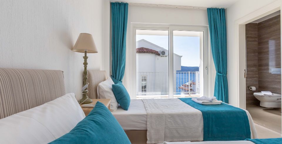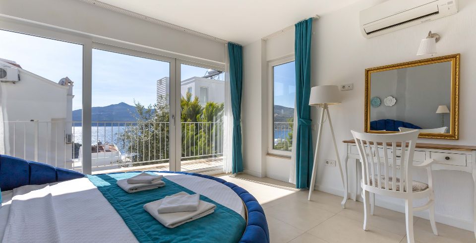 1. Yatak Odası: Suit çift kişilik aile yatak odası, Deniz manzaralı, Komidin,Klima, Makyaj masası, Banyo ve Lavabo, Balkon bulunmaktadır.