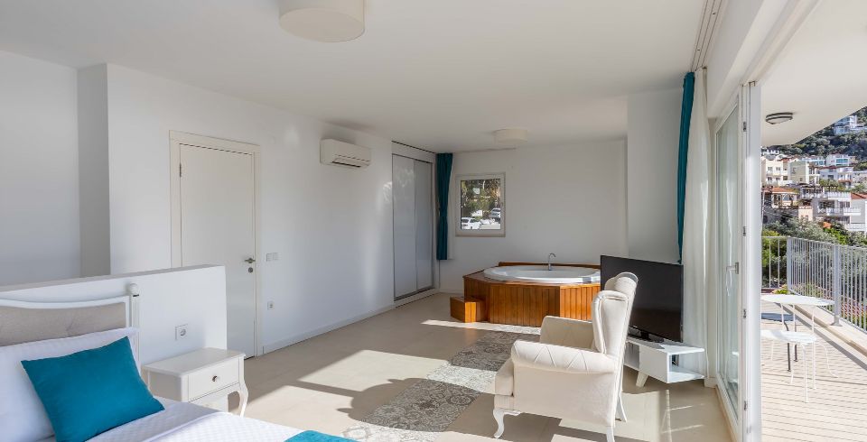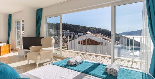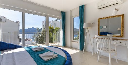3. Yatak Odası: : Suit çift kişilik aile yatak odası, Deniz manzaralı, Komidin, Klima, Makyaj masası, Banyo ve Lavabo,Balkon bulunmaktadır.