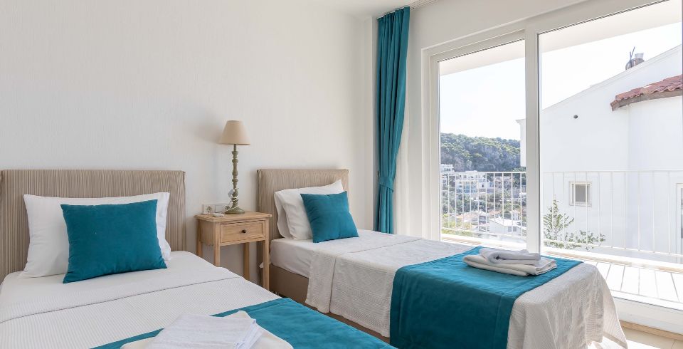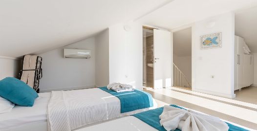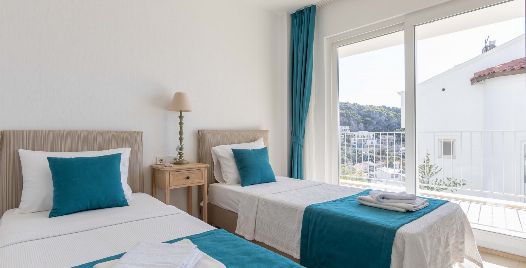 2. Yatak Odası: Genç yatak odası Deniz manzaralı, İki adet tek kişilik yatak, Klima, Komidin, Banyo ve Lavabo bulunmaktadır.