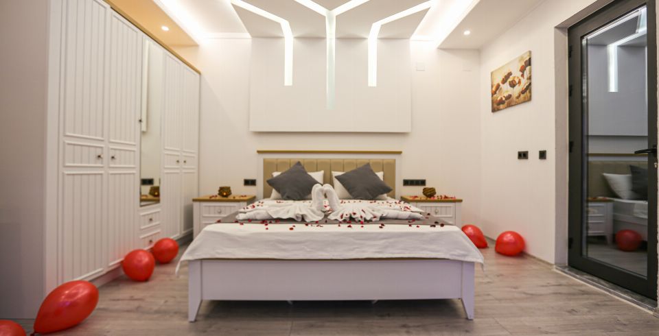 Kiralık yazlık villamız İslamlar bölgesinde konumlanmıştır. Villamızda her şey en ince ayrıntısına kadar düşünülmüştür. 1 yatak odalı 2 kişilik şirin bir balayı villasıdır. Balayı villamızda sizlere öze bir adet jakuzi bulunmaktadır. Doğa içerisinde sakin huzurlu bir düğün yorgunluğunu artmak için villa cazibe sizlere oldukça keyifli gelecektir. Muhafazakar aileler için oldukça rahat ve özel yüzme havuzu kesinlikle dışarıdan gözükmemektedir.