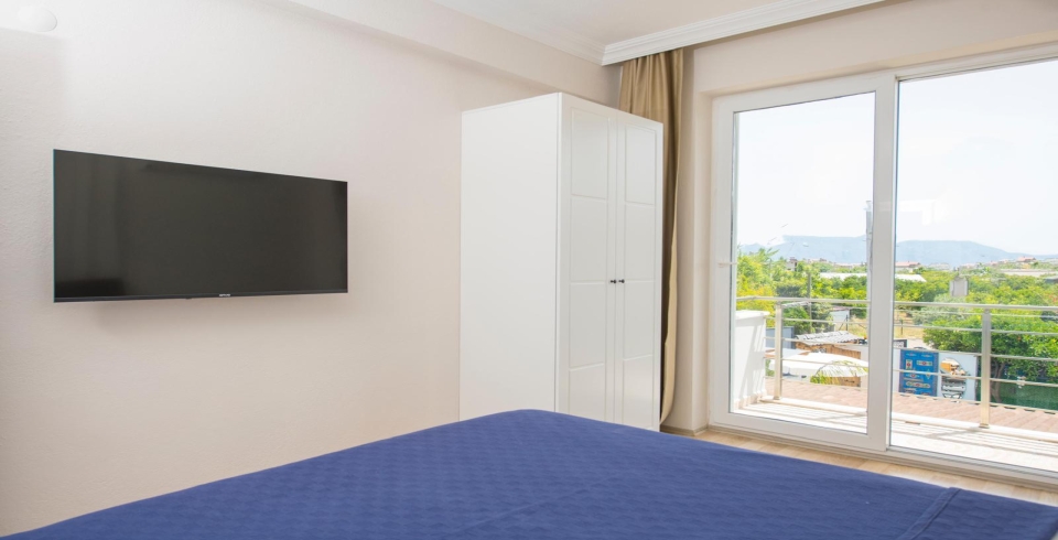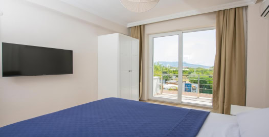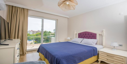 3. Yatak Odası : Çift kişilik bir adet yatak, balkon, elbise dolabı, komodin, klima, ortak banyo ve tuvalet bulunmaktadır.
