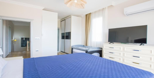 1. Yatak Odası : Çift kişilik bir adet yatak, jakuzi, TV, elbise dolabı, komodin, klima, özel banyo ve tuvalet bulunmaktadır.