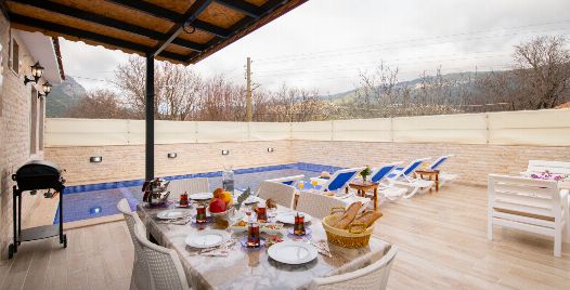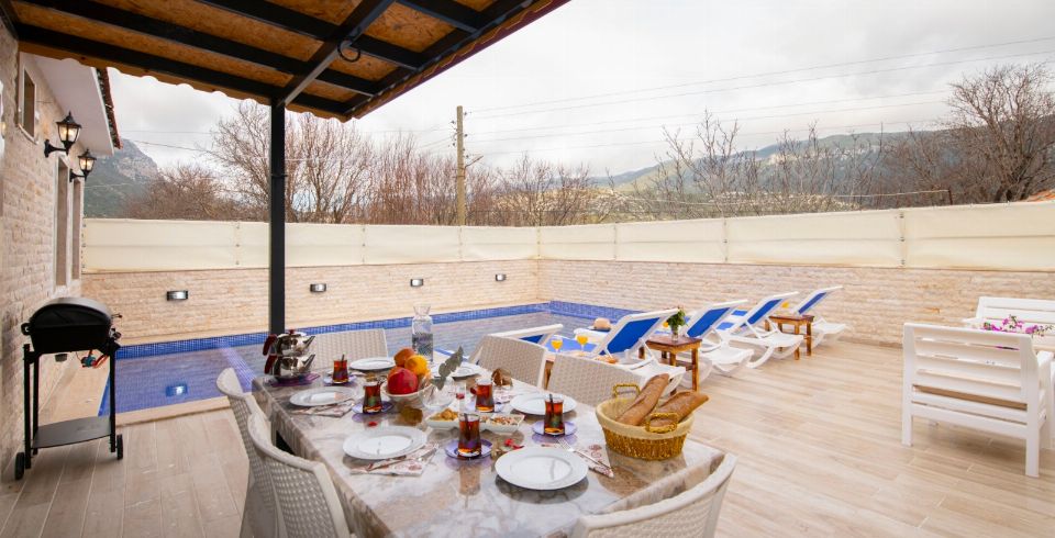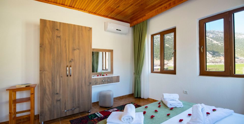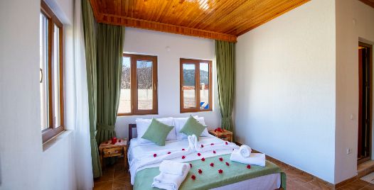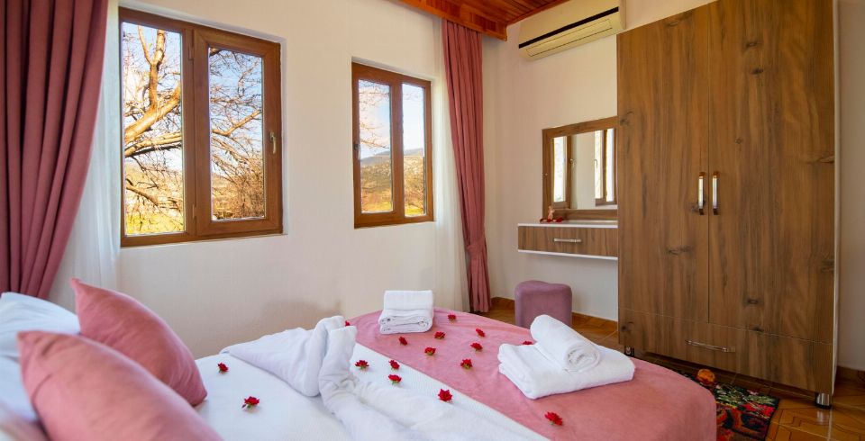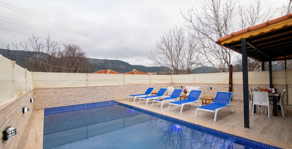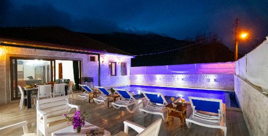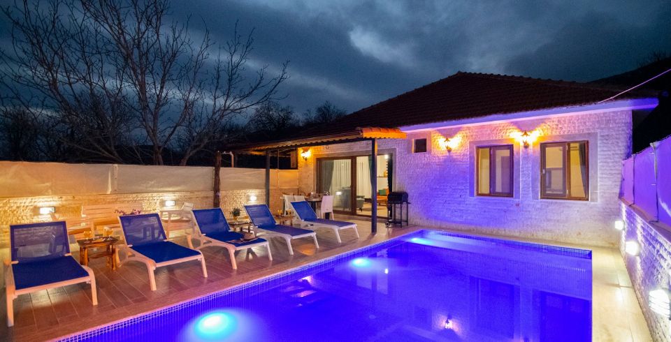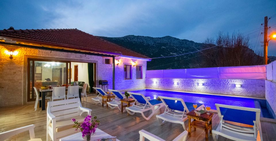 Kalkan’ın Bezirgan mevkiinde yer alan muhteşem manzaralı Villa Cevizdibi muhafazakar ve dışarıdan korunaklıdır. Sessiz, sakin ve huzurlu bir tatile kimse hayır demez. Bütün bir yılın yorgunluğunu, şehrin gürültüsünü ve stresini üzerinizden atmak için doğa ile iç içe korunaklı villamız muhafazakar ailelerimize hitap ediyor. Eşsiz doğa manzarası ile iç içe tasarlanmış villamız 3 yatak odalı, 6 kişilik kapasiteye sahip olan villamız kalabalık aileler ve kalabalık arkadaş grupları için gayet uygundur. Son derece lüks eşyalarla dekore edilen villamızın dış görünümünde de taş mimarisi kullanılmıştır. Villamızda gözlerden uzak, sakinliğin ve dinginliğin tadını gün boyunca uzak bir açıdan Kalkan manzarasını inceleyebilir, sonsuz huzurla tatilinizi sürdürebilirsiniz. Kalabalık – çocuklu aileler için ayrıca çocuk havuzu da bulunmaktadır, bu havuz sayesinde çocuklarınız da rahat ve keyifli bir tatil geçirecektir. Villa Cevizdibi konumu gereği Kalkan şehir merkezine 18 km mesafe uzaklığındadır. Enfes bir manzaraya sahip olan villamızın keyfini çıkarmanız için sizleri Villa Cevizdibi'ne davet ediyoruz.