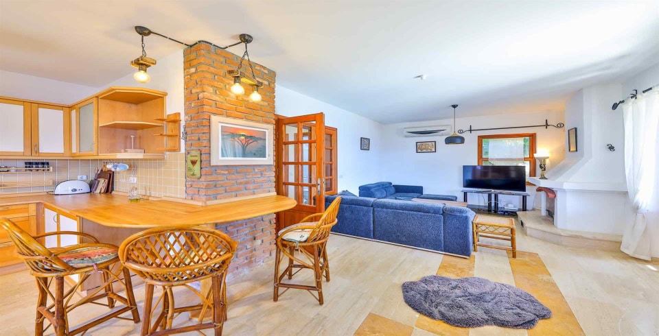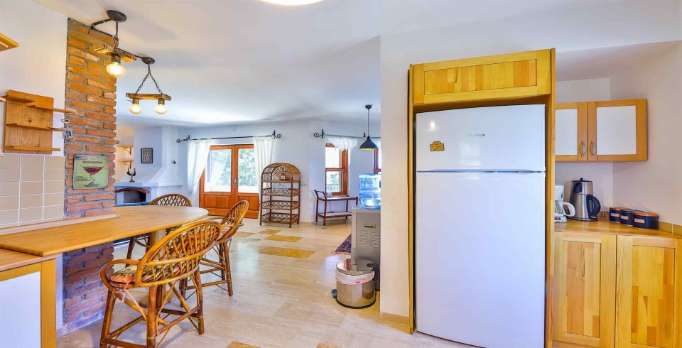 Villanın otantik mimarisi, doğal taş ve ahşap detaylarla bütünleşerek sıcak ve samimi bir atmosfer sunuyor. Deniz manzaralı bahçesinde kahvenizi yudumlayabilir, doğanın içinde huzurlu bir tatil geçirebilirsiniz.