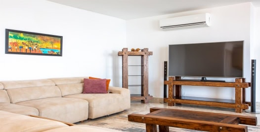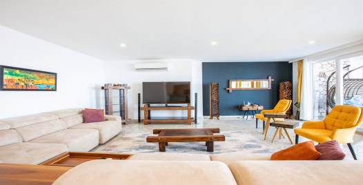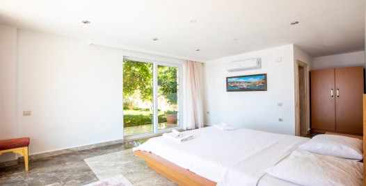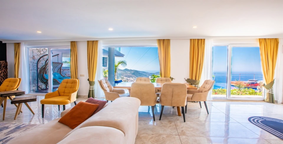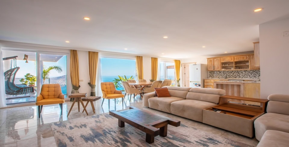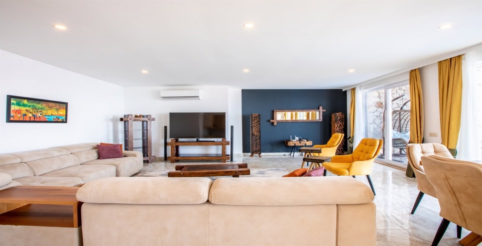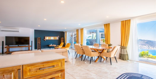 Salon :Oturma grubu, Uydu TV (LCD) , Klima ve havuz terasına çıkış bulunmaktadır.