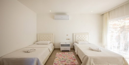3. Yatak Odası : 2 Adet tek kişilik yatak, Elbise dolabı, Komidin, Makyaj masası, Klima, Banyo bulunmaktadır.