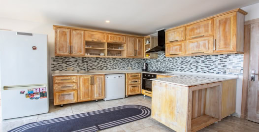 Mutfak : Buz dolabı, Bulaşık makinesi, Mikrodalga fırın, Elektrikli su sıtıcısı, Tost makinesi, Fırın, 4’lü ocak, 8 kişilik yemek takımı, Tava, Tencereler, çatal, bıçak vb.
