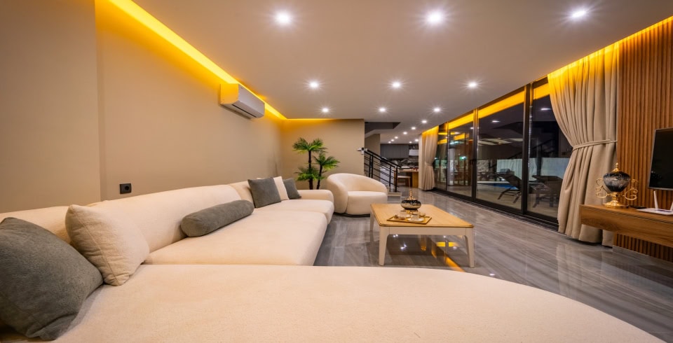 Salon: Konforlu oturma grubu, TV, orta sehpa , klima bulunmaktadır.