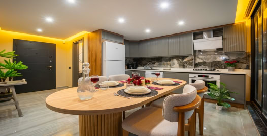 Mutfak: Modern Amerikan mutfak, 4'lü ocak, fırın, mikrodalga fırın, yemek masası, buzdolabı bulunmaktadır.