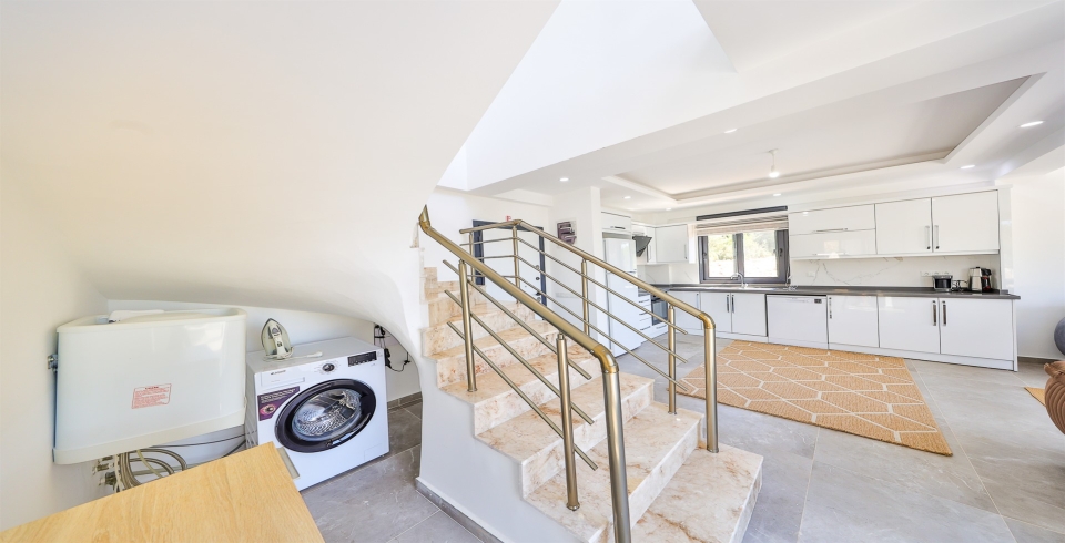 Muftak : Amerikan tarzı mutfağa sahip olan villanın mutfağında aradığınız tüm mutfak araç gereçlerini bulabilirsiniz., buzdolabı, bulaşık makinesi, çamaşır makinesi, yemek masası, fırın, 4’lü ocak, mikrodalga fırın, tost makinesi, kettle, 6 kişilik yemek takımı, tava, tencereler, çatal, bıçak takımı bulunmaktadır.