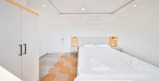 1. Yatak Odası : Çift kişilik yatak, elbise dolabı, komodin, makyaj masası, klima ve banyo bulunmaktadır.