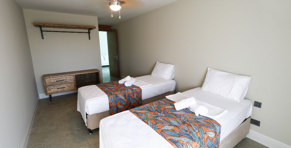 4. yatak odası : 2 adet tek kişilik yatak, klima, elbise dolabı, banyo ve lavabo bulunmaktadır.