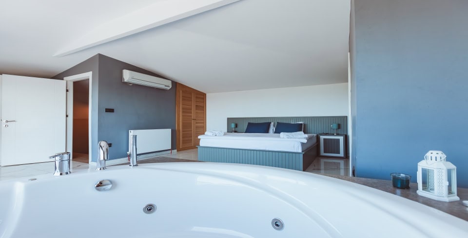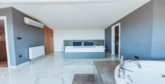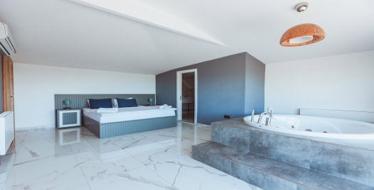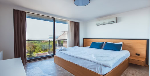 1. Yatak Odası: 1 adet çift kişilik yatak, elbise dolabı, makyaj masası, klima ve banyo-tuvalet yer almaktadır.