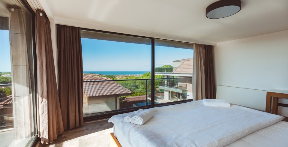 2. Yatak Odası: 1 adet çift kişilik yatak, elbise dolabı, makyaj masası, banyo, tuvalet ve klima yer almaktadır.