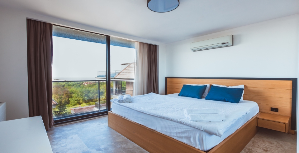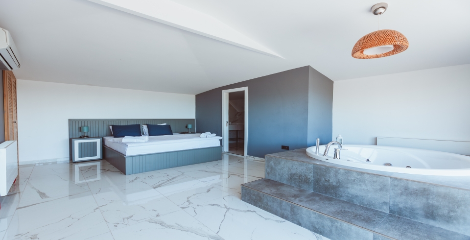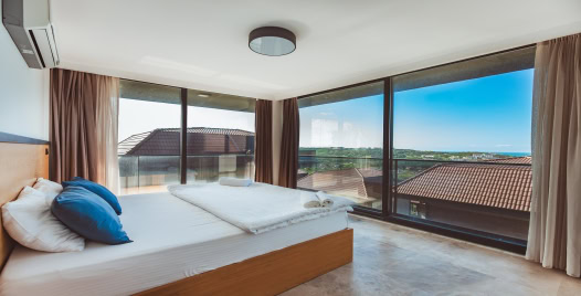 4. Yatak Odası: 1 adet çift kişilik yatak, elbise dolabı, makyaj masası, balkon, banyo, tuvalet ve klima yer almaktadır.