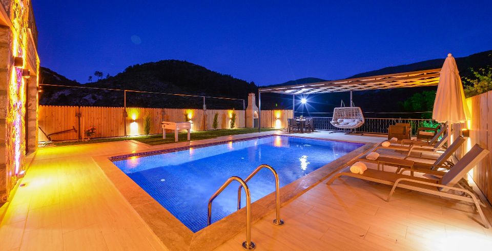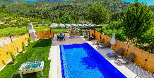 Kiralık yazlık villamız Hacıoğlan mevkisin de konumlanmıştır. 2 yatak odalı 4 kişilik kapasiteye sahiptir. Havuz ve havuz terası muhafazakar ve korunaklıdır. Muhafazakar ve balayı çiftleri için harika tatil imkanı sağlanmaktadır. Özel yüzme havuzunda çocuk havuzu bulunmaktadır. Balayı süit odasında jakuzi diğer yatak odasında 2 adet tek kişilik yatak bulunmaktadır. Doğa içerisinde olan villamız bahçesinde salıncak ve langırt yer almaktadır. Villamızın taş ve ahşap işçiliği bir arada olup oldukça konforlu ve lüks döşemeler kullanılmıştır. Villamız doğa içerisinde olup en yakın merkeze araç ile 30 dk. mesafede bulunmaktadır.