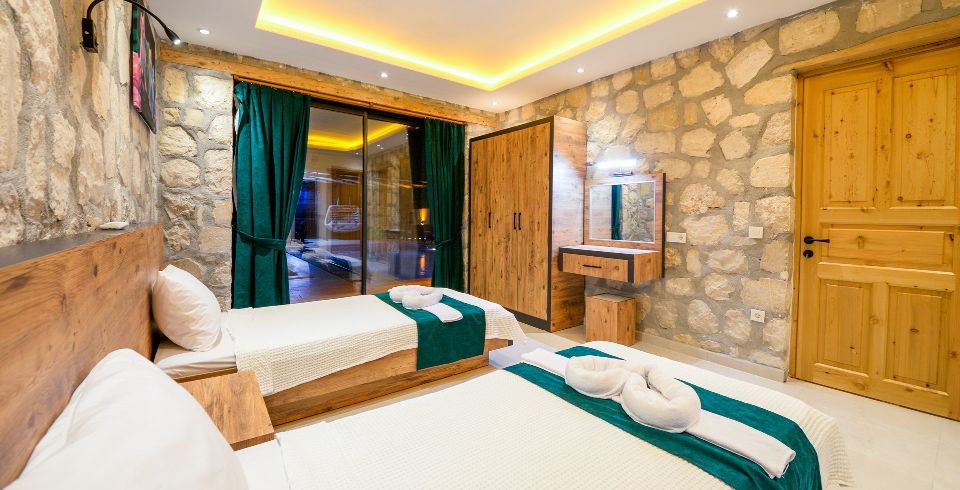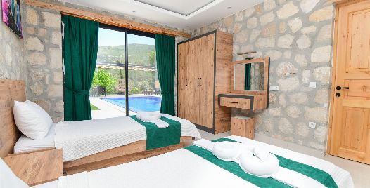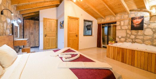 1. Yatak Odası : Çift kişilik yatak, klima, jakuzi, komodin, elbise dolabı, makyaj masası banyo ve tuvalet bulunmaktadır.