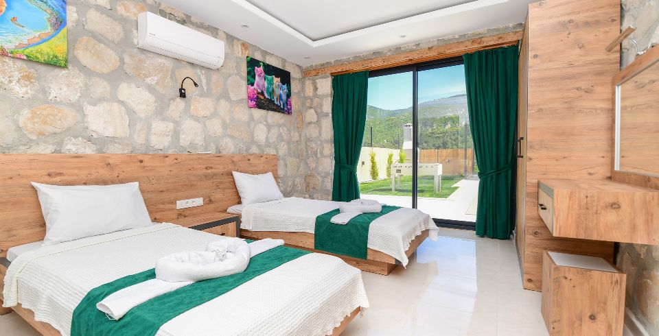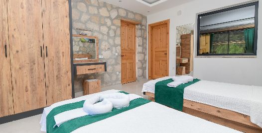 2. Yatak Odası : 2 adet tek kişilik yatak, klima, elbise dolabı, komodin, makyaj masası, banyo ve tuvalet bulunmaktadır.