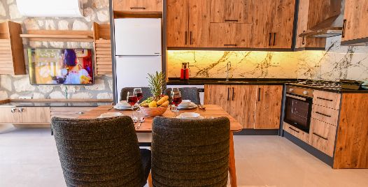 Mutfak : Villamızın mutfağında buzdolabı bulaşık makinası, çamaşır makinası, 4'lü ocak, ketıl, 4 kişilik yemek takımı bulunmaktadır.
