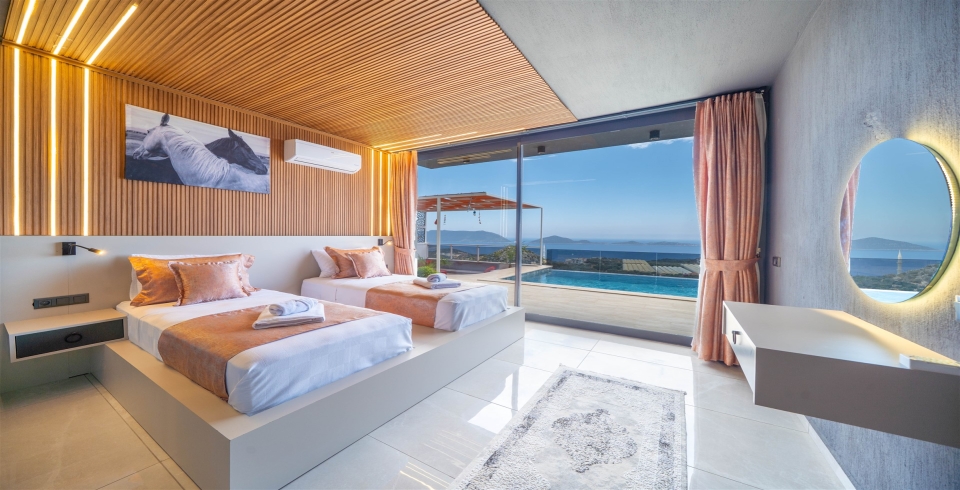 3. Yatak Odası : Klimalı yatak odası olup, 2 adet tek kişilik yatak, elbise dolabı, komodin ve banyo/WC bulunmaktadır.