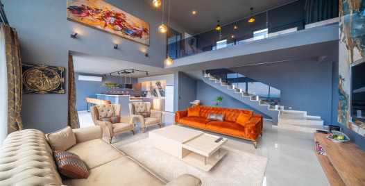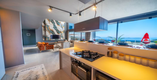 Muftak : Tam donanımlı modern Amerikan mutfak içerisinde bulaşık makinesi , buzdolabı fırın, ocak, elektrikli su ısıtıcı, kahve makinesi ,yemek masası, yemek takımları, çatal ve bıçak takımları, tencere ve tava takımları ve bardaklar bulunmaktadır.