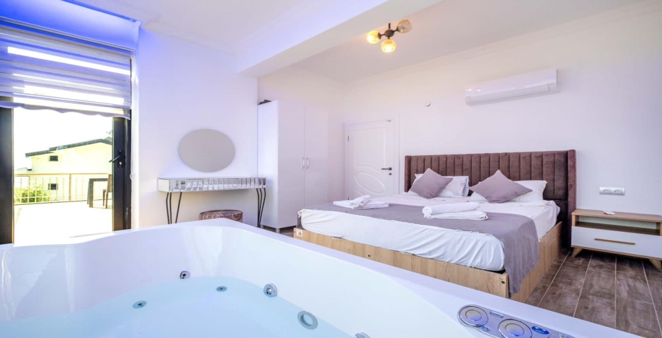 2.Yatak Odası: Çift kişilik yatak, jakuzi, klima, elbise dolabı, makyaj masası ve balkon bulunmaktadır.