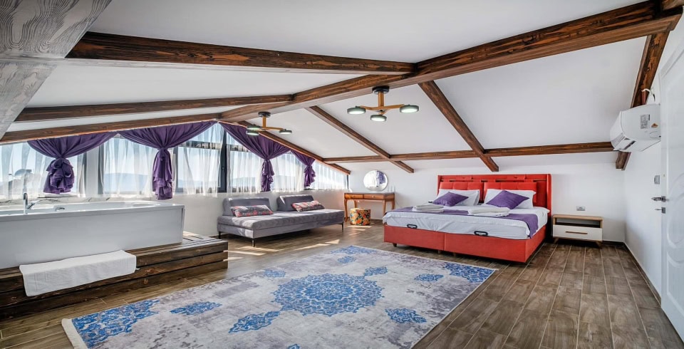 1.Yatak Odası: Çift kişilik yatak, klima, jakuzi, ebeveyn banyo, Lcd tv, elbise dolabı, makyaj masası, şehir manzarası teras bulunmaktadır. Ayrıca oda terasında salıncak bulunmaktadır.