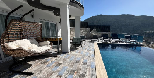 Kalkan’ın Sarıbelen mevkiinde, doğayla iç içe huzurlu bir konumda yer alan bu villamız, şehir hayatının yoğun temposundan uzaklaşmak ve temiz havanın keyfini çıkarmak isteyen misafirlerimiz için ideal bir seçenektir. Havuzu dışarıdan görünmeyen yapısı sayesinde, muhafazakar aileler için de konforlu bir tatil imkanı sunar.
