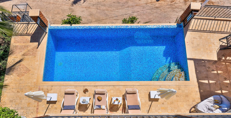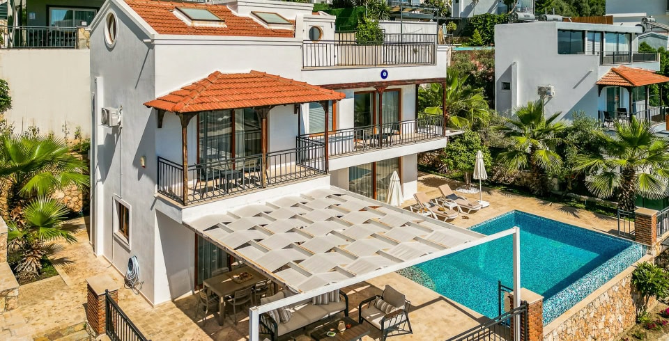 Deniz manzarasıyla büyüleyen bu özel villa, aynı zamanda denize ve merkezi noktalara oldukça yakın bir konumdadır. Gün batımını terastan izlerken Kalkan’ın eşsiz maviliğine karşı kahvenizi yudumlayabilirsiniz.