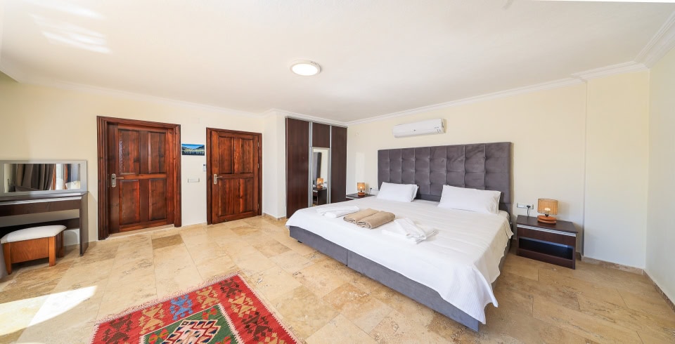 Kalkan’ın seçkin bölgelerinden Kızıltaş’ta konumlanan Villa Değerli, 3 yatak odasıyla 7 kişilik kapasite sunarak kalabalık aileler veya arkadaş grupları için konforlu bir konaklama imkânı sağlar.
