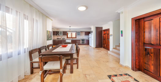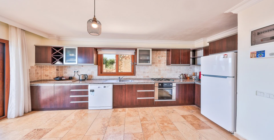Mutfak :Geniş, ferah ve modern dizayn edilmiş Amerikan mutfak, buzdolabı, bulaşık makinesi, çamaşır makinesi, fırın, 4’lü ocak (ankastre), mikrodalga fırın, elektrikli su ısıtıcı, tost makinesi, tava tencere vb. mutfak ekipmanları, yemek takımı, temel araç gereçler bulunmaktadır.