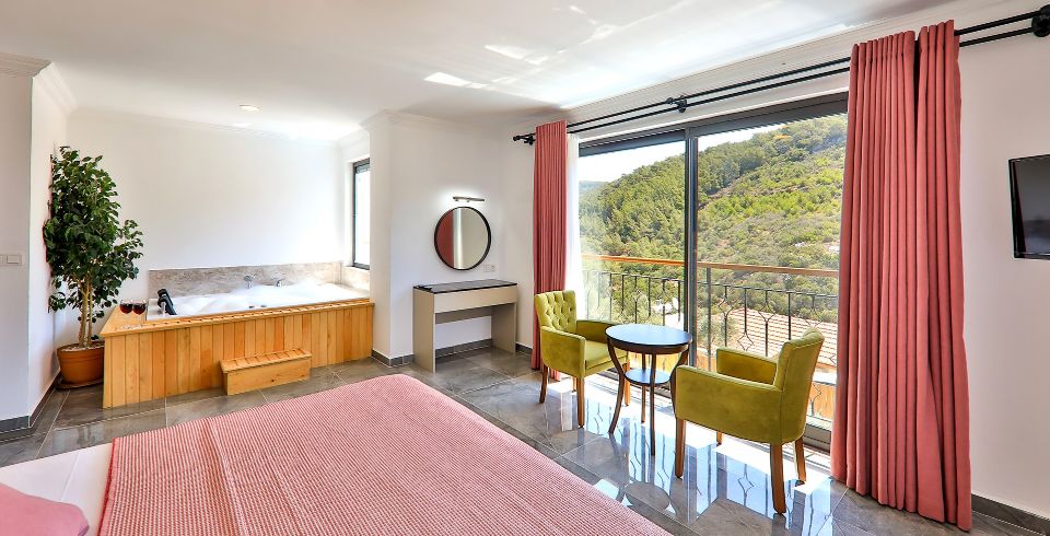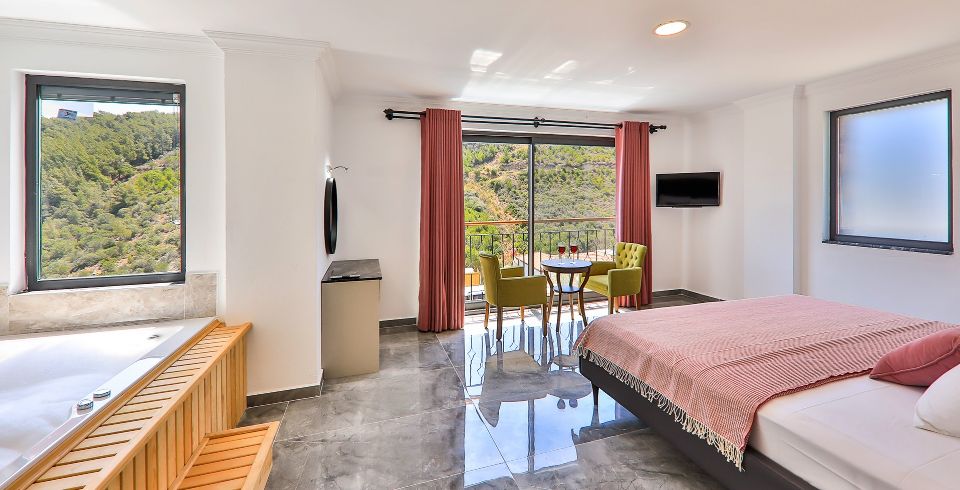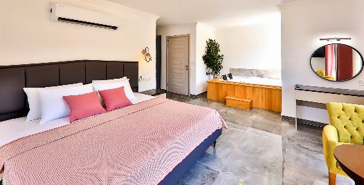 1: Yatak Odası: Çift kişilik yatak, klima, jakuzi, komodin, elbise dolabı, makyaj masası, TV banyo ve tuvalet bulunmaktadır.