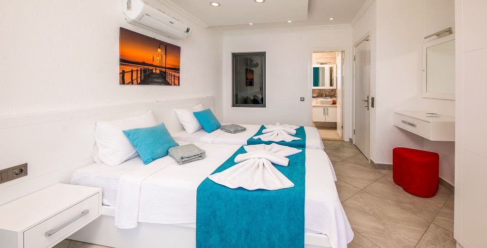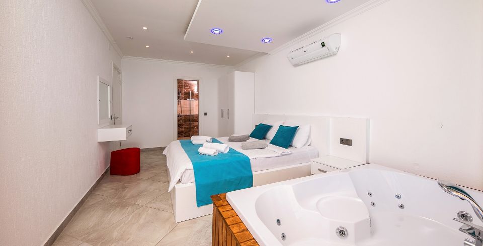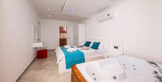 2. Yatak Odası: Çift kişilik yatak, klima, komidin, elbise dolabı, banyo ve lavabo bulunmaktadır.