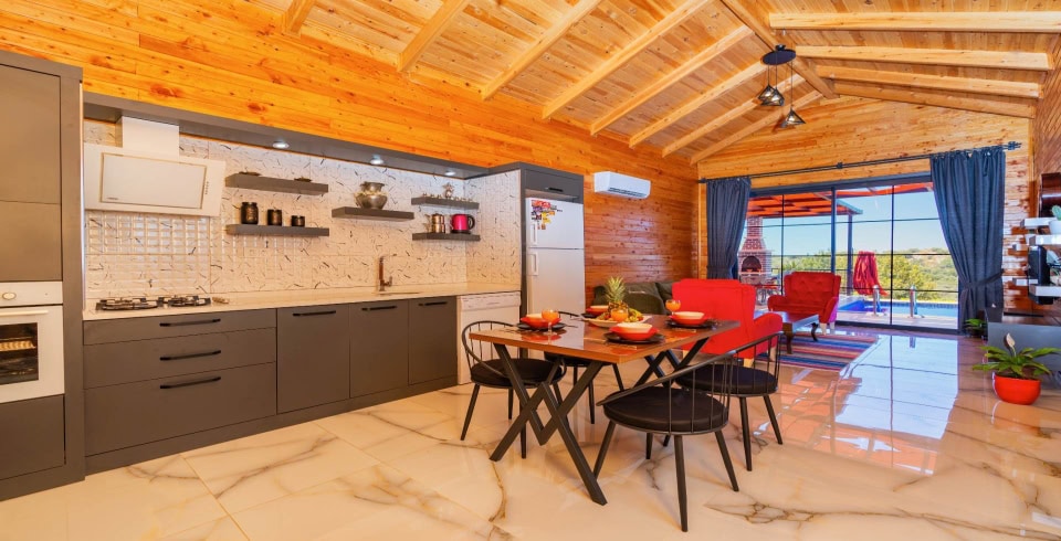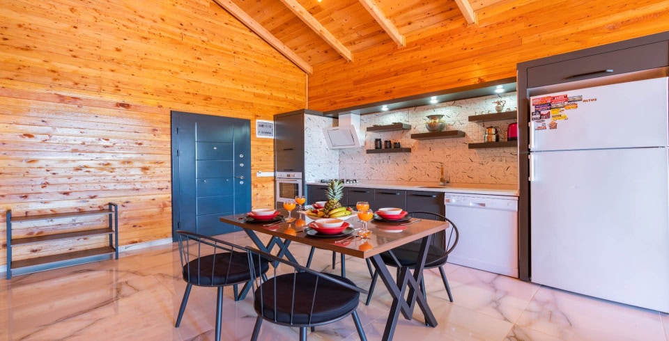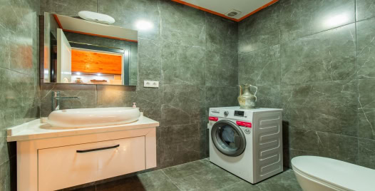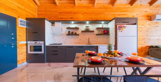 Mutfak : Buzdolabı, bulaşık makinası, çamaşır makinası, kettle, kahve makinası, fırın, mikrodalga fırın, ocak, yemek masası, yemek takımları, tencere tava takımları, çaydanlık bulunmaktadır.