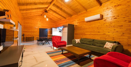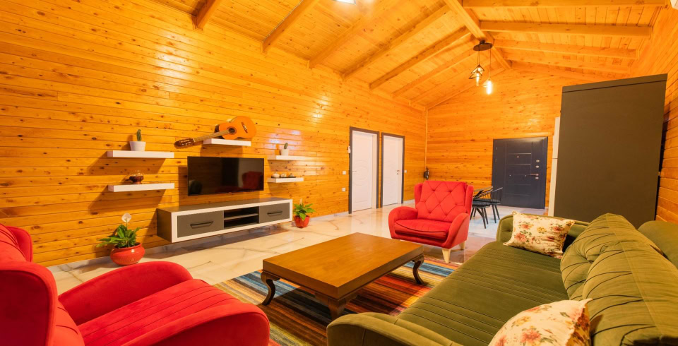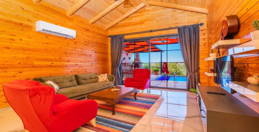 Salon : Havuz terasına direkt çıkışı olan salonumuzda televizyon, modem, oturma grubu, klima, sehpa bulunmaktadır.