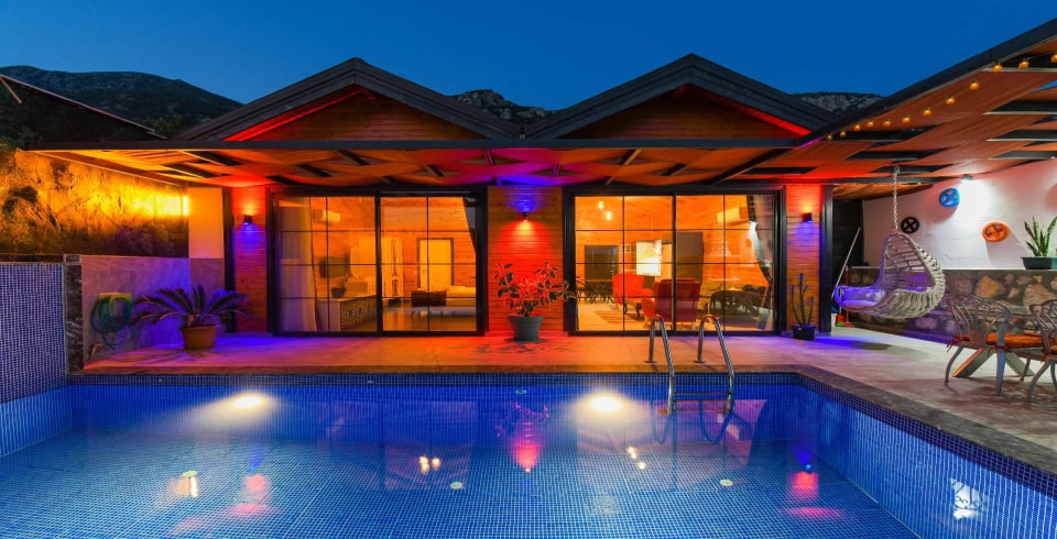 Villa Demir, Kalkan Kördere'de yer alan, 2 kişilik kapasitesiyle balayı çiftleri için özel olarak tasarlanmış lüks bir villadır. Korunaklı özel havuzu ve jakuzisiyle hem mahremiyet hem de konfor sunar. Doğa manzarası eşliğinde keyifli anlar yaşamanız için ideal bir konaklama imkanı sunar. Bahçesi, barbekü alanı ve modern tasarımıyla unutulmaz bir tatil deneyimi için mükemmel bir seçenektir.