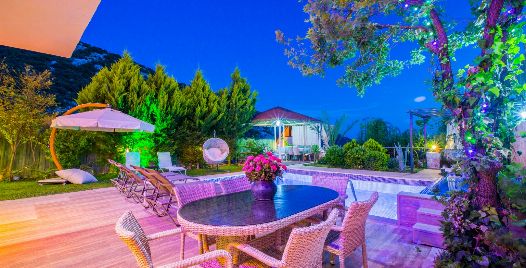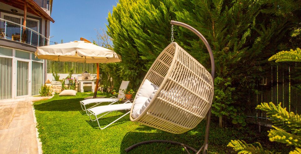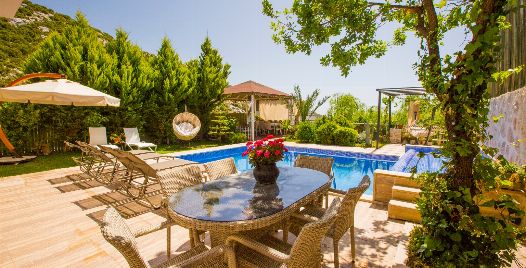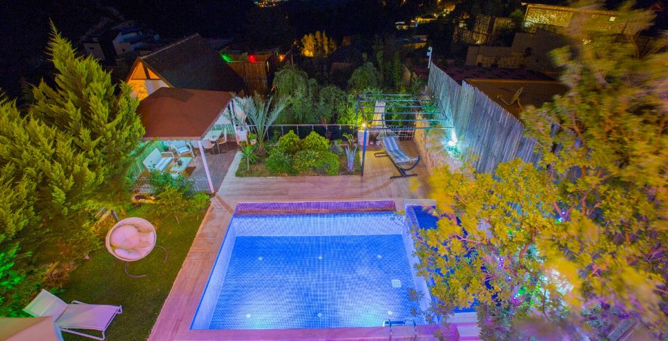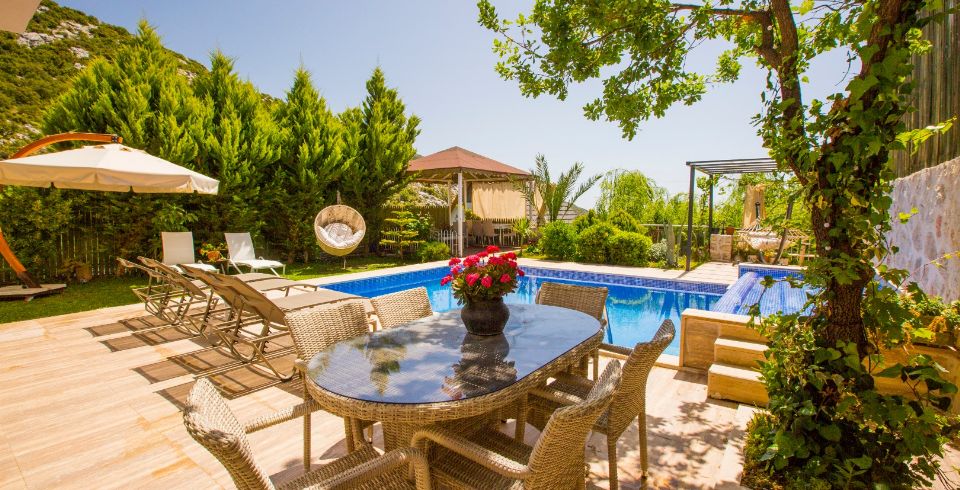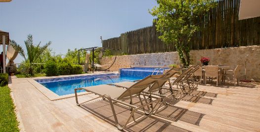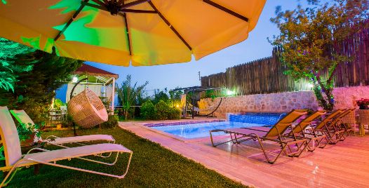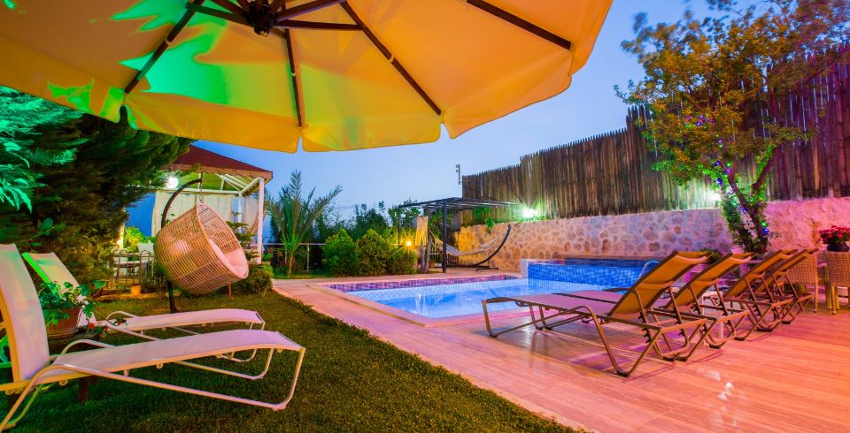 Bahçe : Villamızın bahçesinde özel yüzme havuzu, güneşlenmeniz için 6 adet şezlong, güneşlenme terası, 6 kişilik masa, oturma grubu, hamak, oturma köşesi, mangal keyfiniz için barbekü, güneş şemsiyesi bulunmaktadır.
