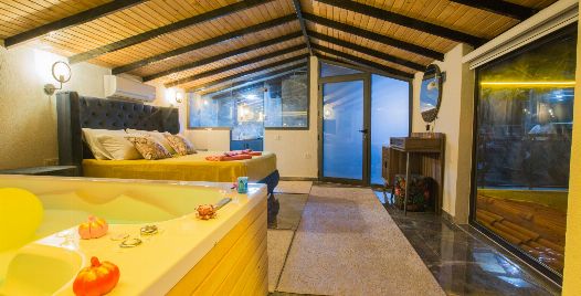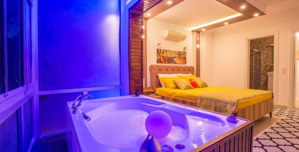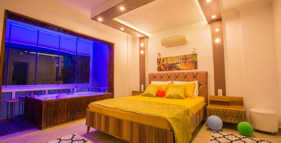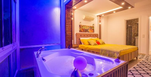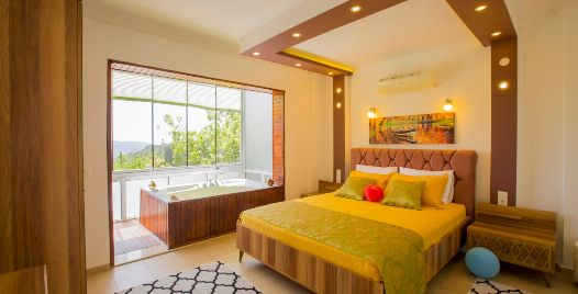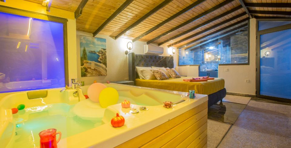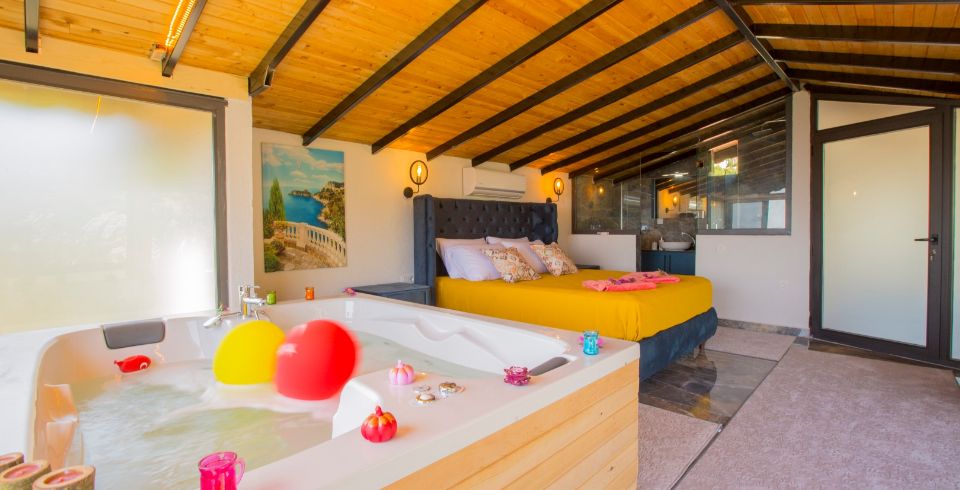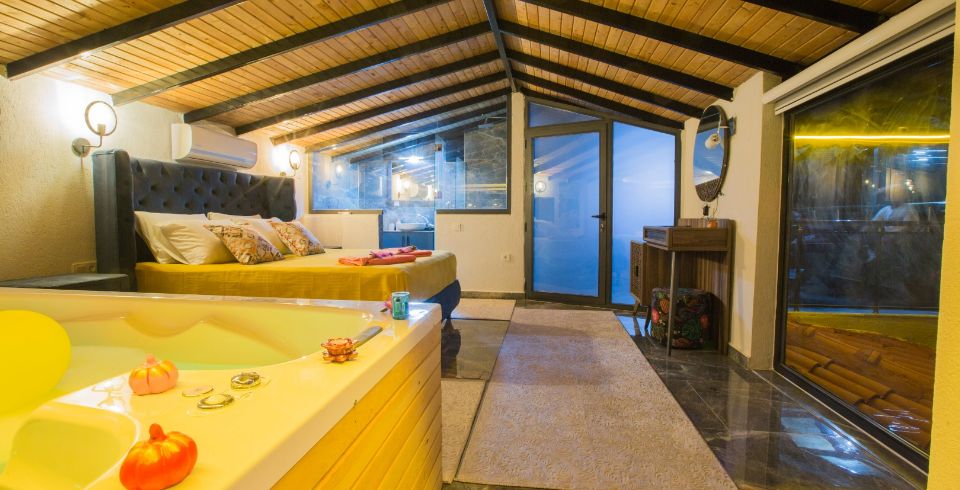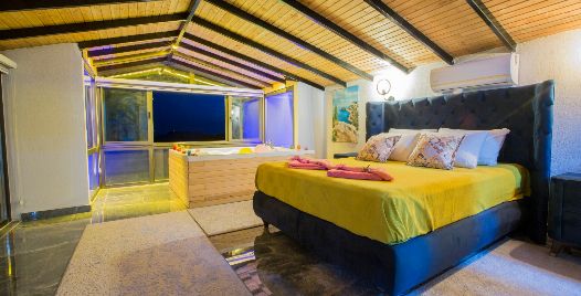 1. Yatak Odası : 1 adet çift kişilik yatak, klima, komodin, elbise dolabı, makyaj masası, jakuzi, balkon, banyo ve tuvalet bulunmaktadır.