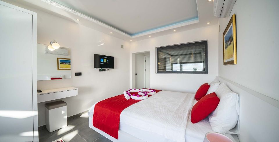1. Yatak Odası : 1 adet çift kişilik yatak, elbise dolabı, komodin, tv, jakuzi makyaj masası, klima, banyo ve tuvalet bulunmaktadır.
