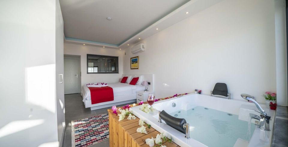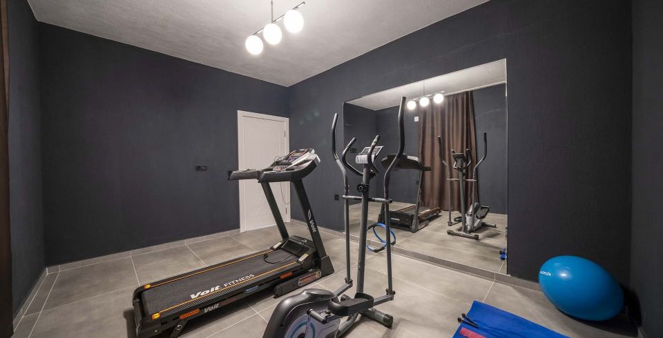 Dış alanda özel yüzme havuzu, oturma köşesi, barbekü bölgesi, masa tenisi ve langırt alanı mevcuttur. Bahçe ve havuz çevresi dış görüşe kapalı olacak şekilde düzenlenmiş olup özellikle muhafazakâr çiftler için ideal bir konaklama ortamı sağlar. Spor odasında koşu bandı, pilates matı ve bisiklet gibi ekipmanlarla tatilde sağlıklı kalma fırsatı sunulmuştur.