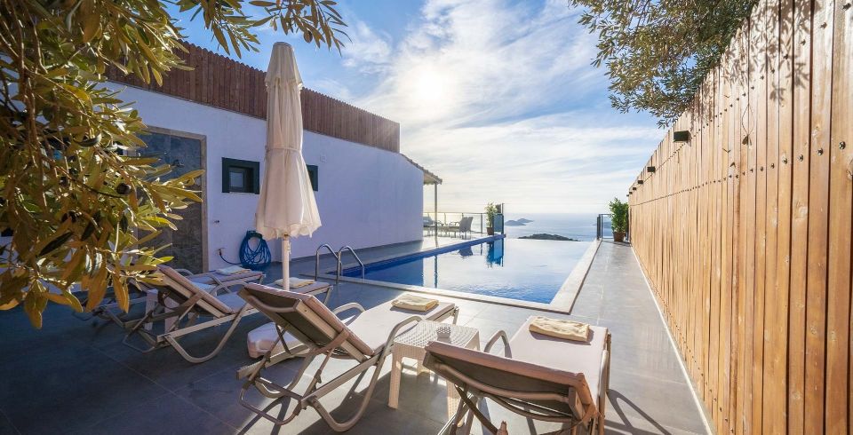 Villa Desde, Kalkan’ın Kördere mevkiinde doğa ve deniz manzarasıyla çevrili, mahremiyeti ön planda tutan zarif bir villadır. İki yatak odası ve iki banyosu ile 4 kişiye kadar konaklama imkânı sunar. Suit yatak odasında jakuzi bulunmaktadır, diğer odada iki tek kişilik yatak kullanılmıştır. İç mekanda ferah salon, tam donanımlı Amerikan mutfak ve sürgülü cam kapılarla havuz terasına açılan alan yer alır.