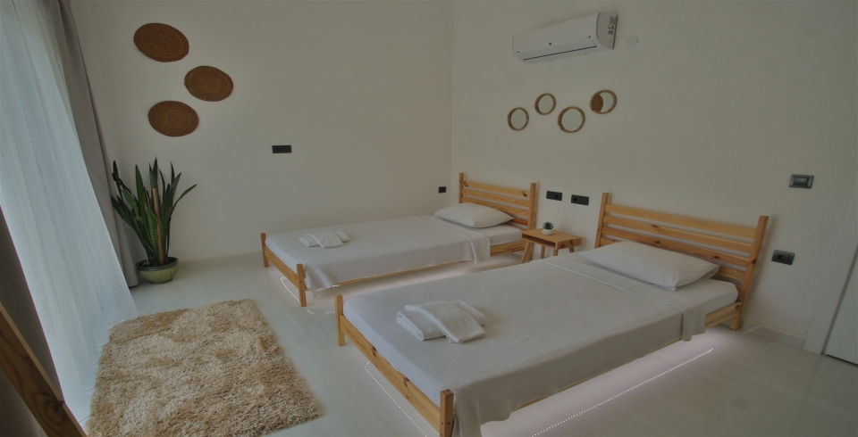 2. Yatak Odası: 2 adet tek kişilik yatak klima, komodin, elbise dolabı, makyaj masası, banyo ve tuvalet bulunmaktadır.