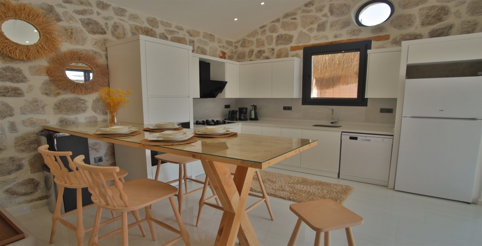 Mutfak: Villamızın mutfağında buzdolabı bulaşık makinası, çamaşır makinası, 4'lü ocak, ketıl, mikro dalga fırın, filtre kahve makinası yemek takımı bulunmaktadır.