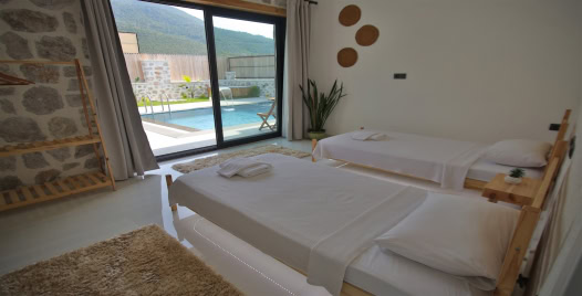 Villamız Fethiye Çalıca bölgesinde yer almaktadır. 2 yatak odasına sahip tatil villamız 4 kişilik konaklama kapasitesine sahiptir. Doğa içinde bir konuma sahip olan tatil villamızın havuz alanı sizlere keyifli bir tatil ortamı sunmaktadır. Balayı çiftleri ve çekirdek aileler için ideal bir seçenek olan muhafazakar hassasiyete sahip misafirlerimiz içinde uygun bir tatil ortamı sunmaktadır.