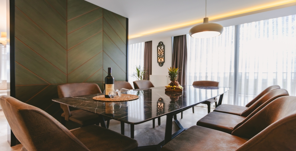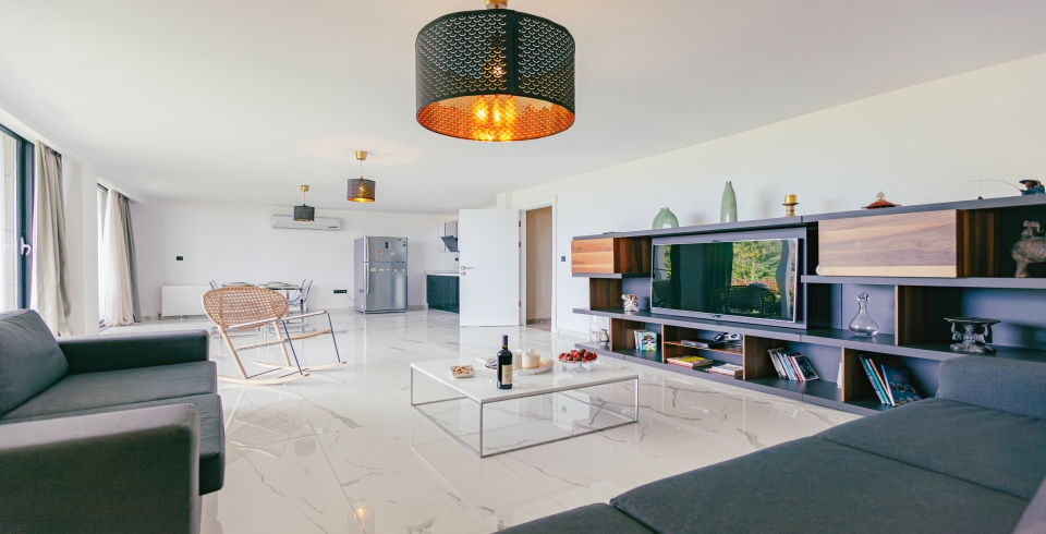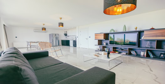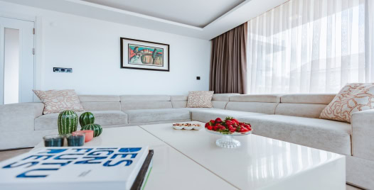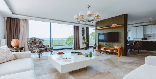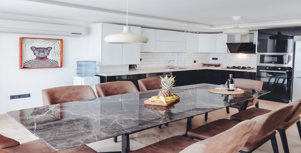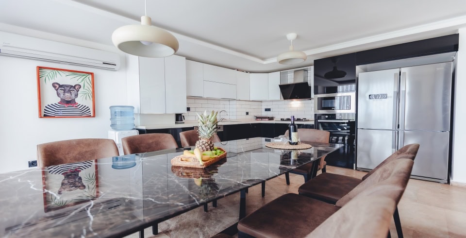 Mutfak: Buzdolabı, Bulaşık makinesi, ankastre seti, Mikrodalga fırın, su ısıtıcısı, 8 kişilik yemek takımı ve tüm mutfak gereçleri bulunmaktadır.