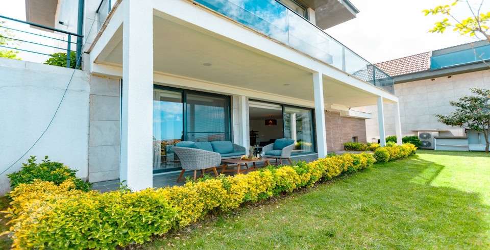 Havuz ve Bahçe: Yemek masası ve sandalyeler, bahçe oturma grubu, barbekü, güneş şemsiyesi, havuz ve şezlong bulunmaktadır.